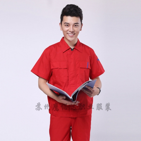 苏州鹰诺服装:大红夏季工装工作服AD091