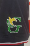 国迈选择的是精梳棉材质的T恤衫,藏青色,区别于其他公司不一样的是,他们的标志加在了左臂。左臂刺绣的大小也会对整体衣服的美观起到了不可忽视的作用,我们的销售人员也精心的帮助客户调整大小,达到完美状态