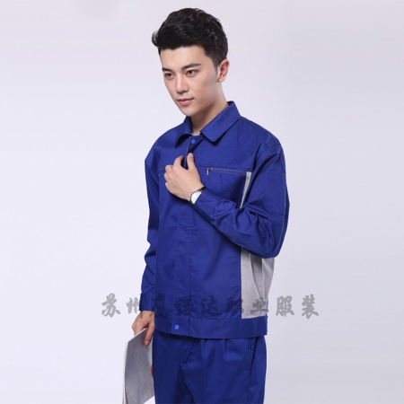 苏州鹰诺服装:艳蓝配浅灰涤棉纱卡五金行业工作服AC072-WJ