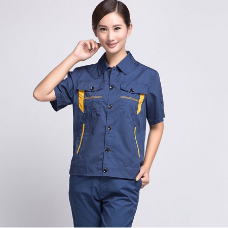 苏州鹰诺服装:深兰色短袖工作服AD04-2