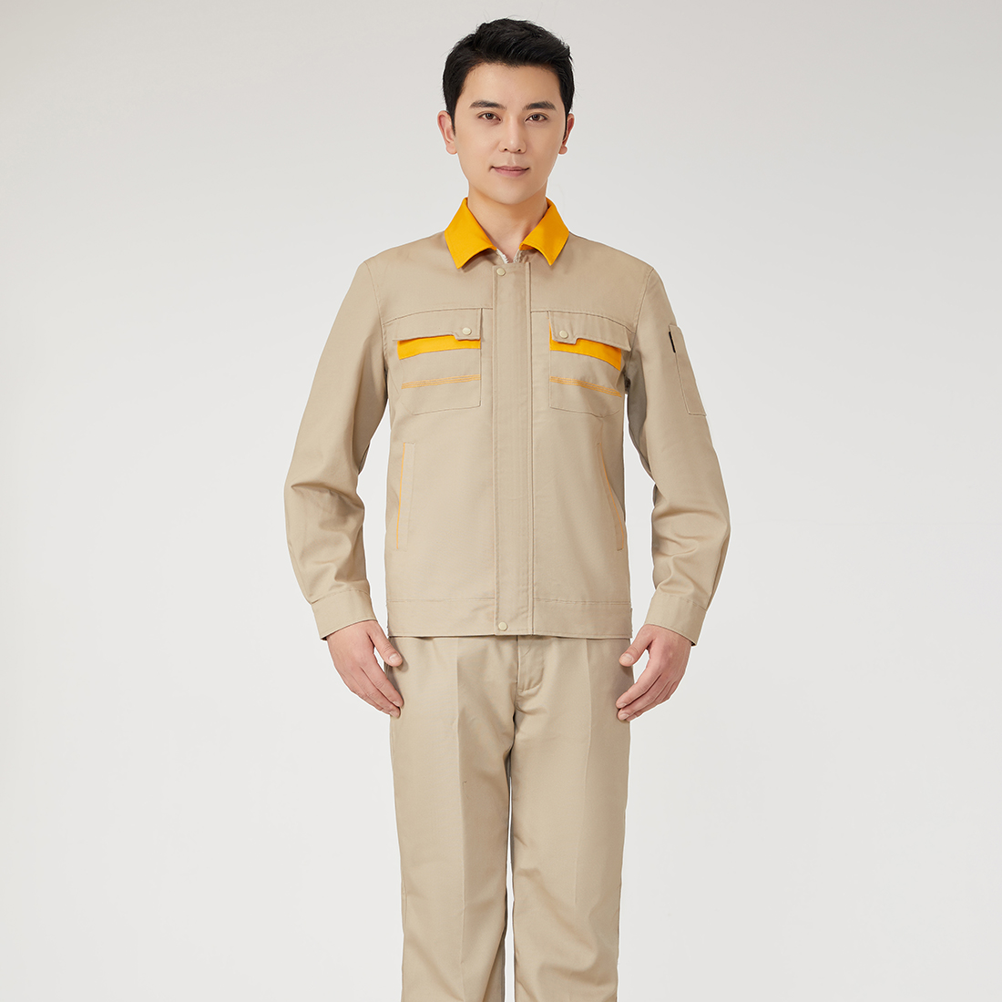 米色拼黄工作服AC08-1