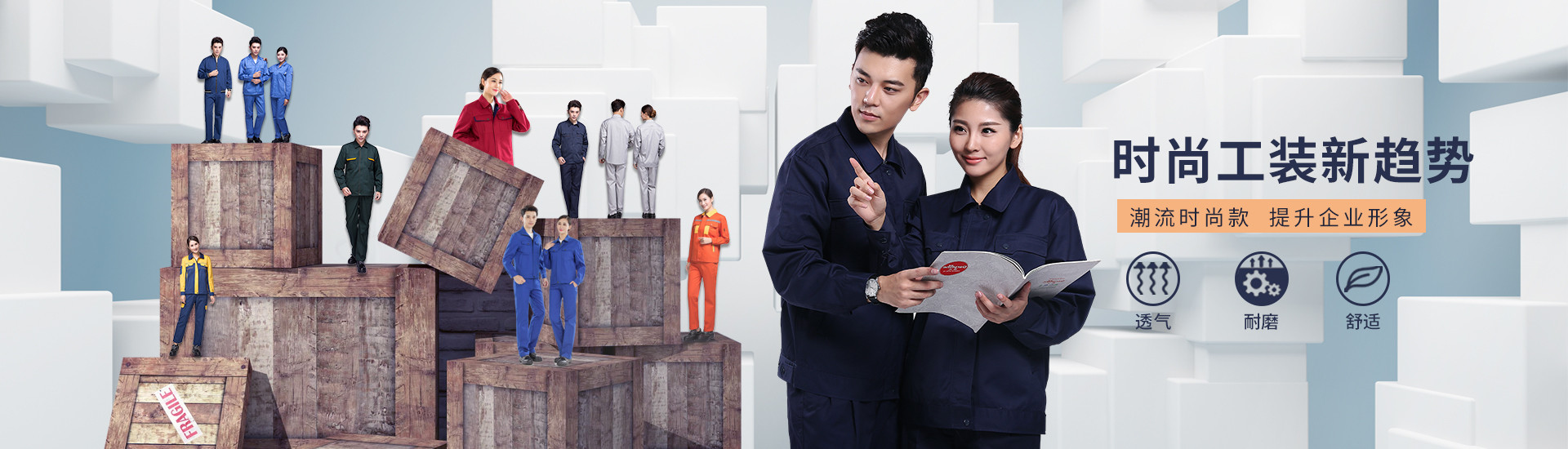 苏州鹰诺服装:浅灰拼艳蓝色工作服AC2204-4