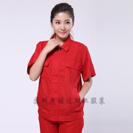苏州鹰诺服装:大红夏季工装工作服AD091