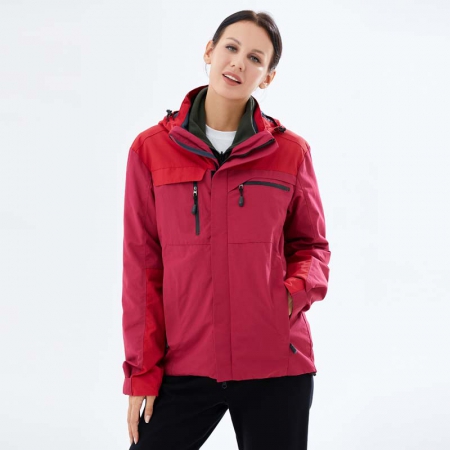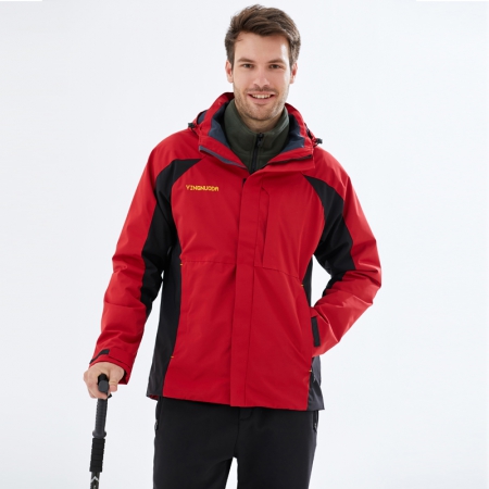 苏州鹰诺服装:红拼黑色冲锋衣CFY1903-4