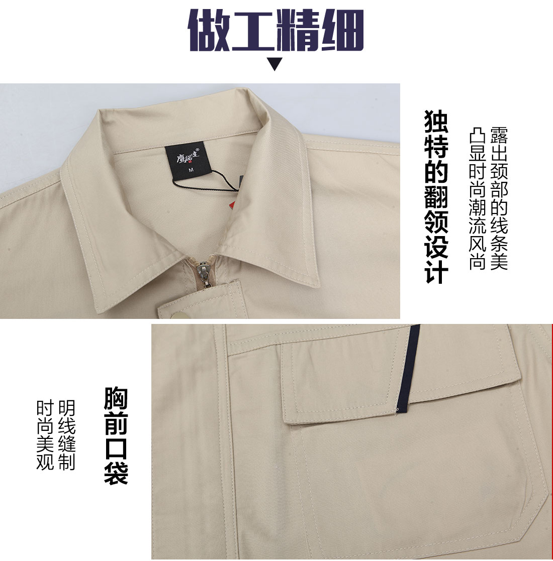 - 游客于 2017-06-01 11:09:51 发表苏州鹰诺服装:米色拼藏青防静电服AD087-JD