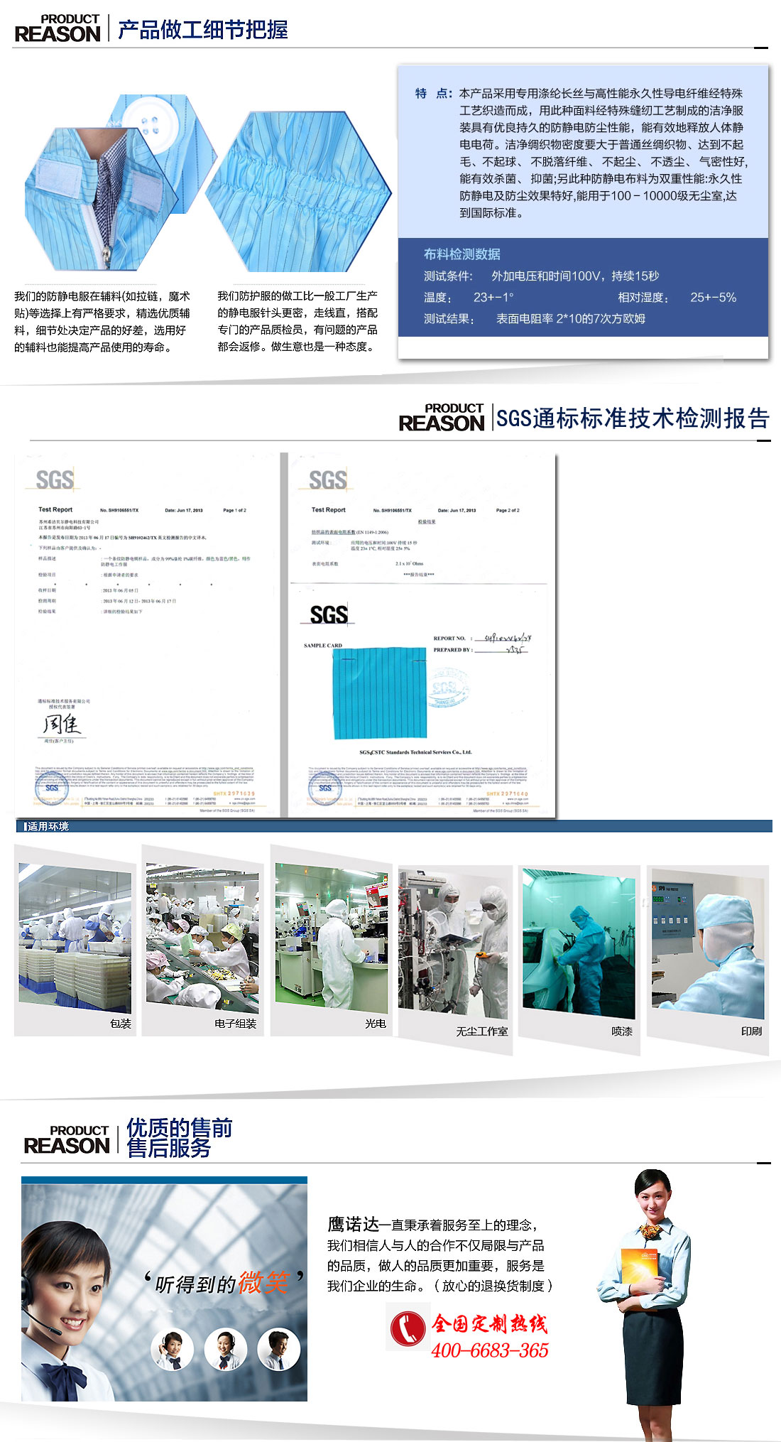 - 我的公司是电子厂,给工人做的防静电工作服,效果不错,发货的时候还把检验书发给我们了