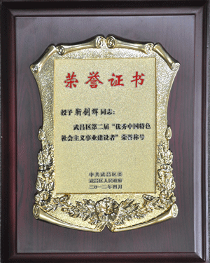 2012年4月,靳剑辉获评为武昌区第二届“优秀中国特色社会主义建设者”
