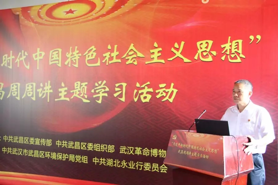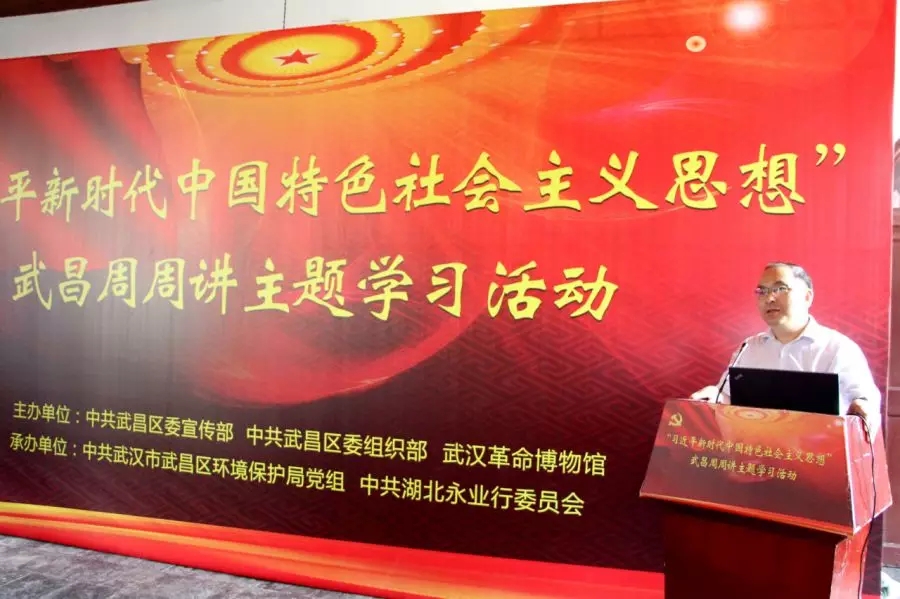 8月10日上午,“习近平新时代中国特色社会主义思想”武昌周周讲主题学习活动在武汉革命博物馆(中共五大会址纪念馆)举办。本次活动由中共武昌区委宣传部、组织部,武汉革命博物馆主办,中共武汉市武昌区环境保护局党组、中共湖北永业行委员会承办。区委常委、区委组织部部长胡太荣,区委常委、区委宣传部部长王兴文,副区长黄丰宙,区纪委监委派驻区市场监管局纪检监察工作组组长潘菱出席活动,区环保局全体党员干部、永业行董事长兼总裁潘世炳、执行总裁王琴、副总裁雷小军、刘晓峰及50余名党员代表参加活动。区环保局党组书记汪火应主持活动。