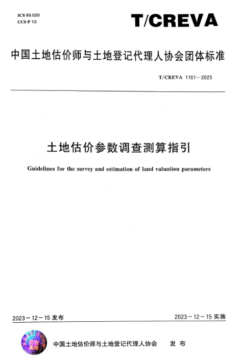 12月14日,中国土地估价师与土地登记代理人协会(以下简称“中估协”)发布三项团体标准,永业行参编的《土地估价参数调查测算指引》(T/CREVA 1101—2023)于2023年12月15日发布实施。
