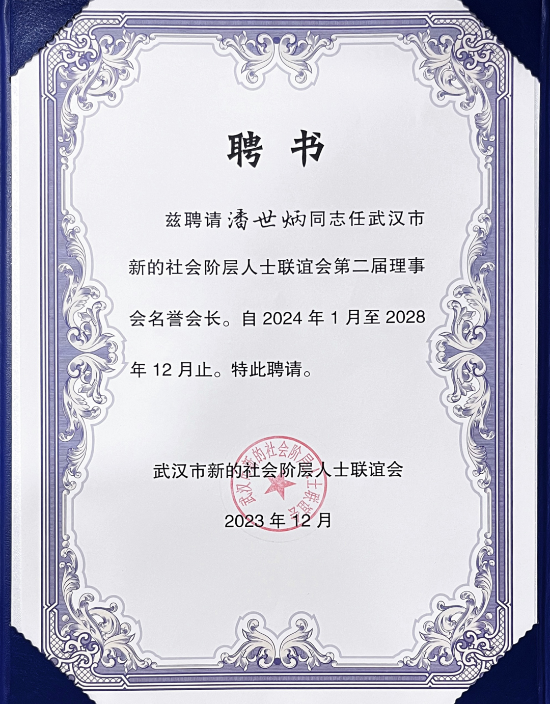 2023年12月15日,武汉市新的社会阶层人士联谊会(下称“市新联会”)第二次会员代表大会在武汉召开。会议由武汉市委统战部副部长何文娟主持。武汉市委常委、市委统战部部长胡勇政出席并讲话。省委统战部新阶层处处长袁伟到会指导并致辞。省新联会副会长、永业行董事长潘世炳受聘为武汉市新联会第二届理事会名誉会长,永业行高级副总裁文云波当选为副会长。
