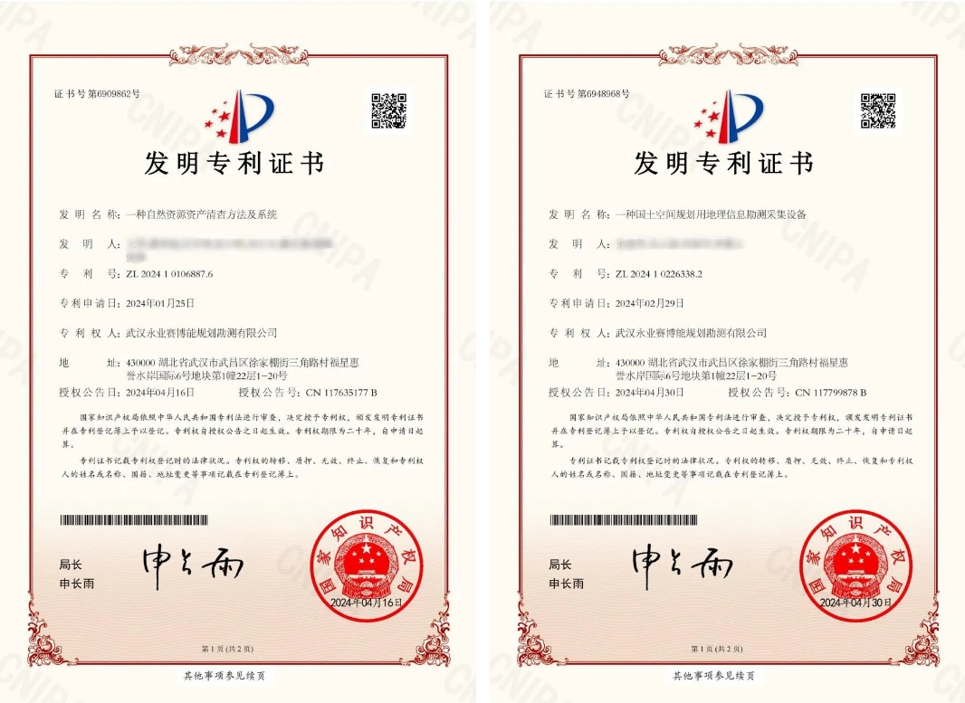 近日,永业行申报的发明专利《一种自然资源资产清查方法及系统》《一种国土空间规划用地理信息勘测采集设备》获得国家知识产权局授权,为公司的创新发展再添新动力。