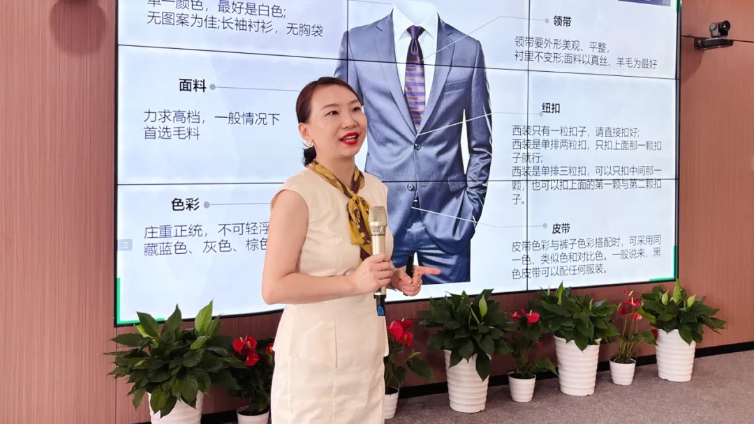 本次培训邀请注册礼仪培训师阳梦璇授课。阳老师通过图文案例和生动讲解依次介绍了职场中职业形象塑造、基本仪态展现、言行举止表达等基本内容以及进出门、握手、收发名片、接送、上下楼梯、进出电梯、乘车、会务、餐饮等典型场景下的礼仪原则,帮助参训人员发现和纠正商务礼仪中容易被忽视的细节和常见的误区。授课过程中穿插提问互动,在帮助参训人员更好地理解和记忆相关内容的同时充分调动起了大家的学习热情。现场氛围轻松,反响热烈。