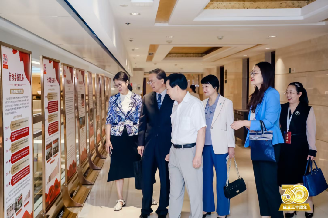自然资源部总工程师田文彪、自然资源开发利用司副司长莫晓辉、确权登记局副局长赵燕,中估协会长王军、秘书长鲍丽萍等一行参观中估协成立30周年发展历程展