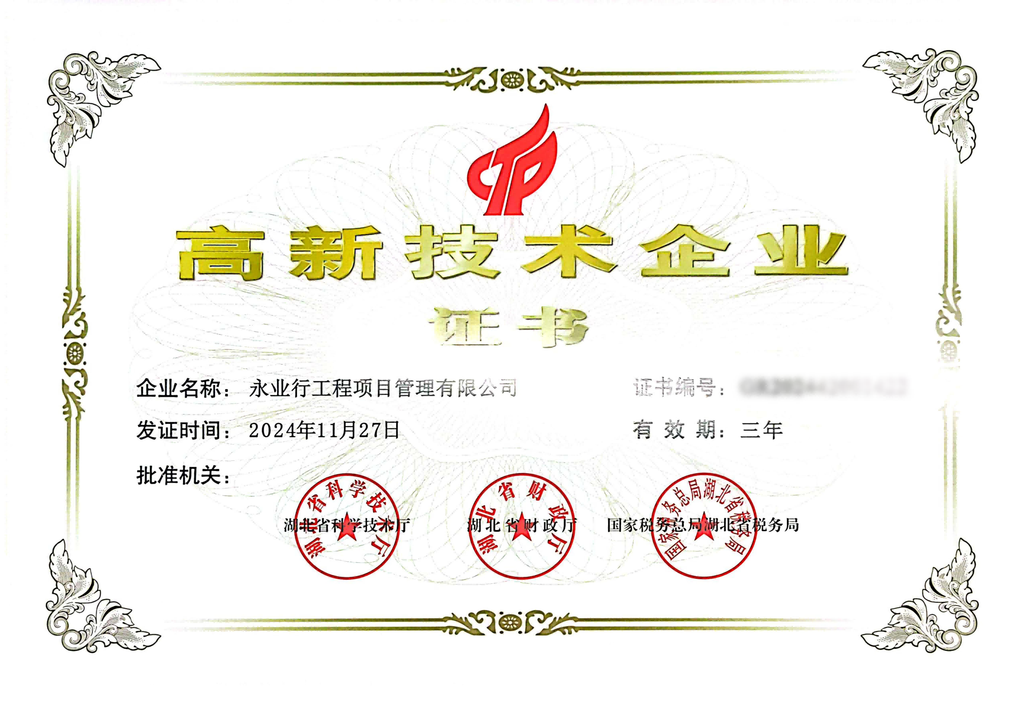 近日,全国高新技术企业认定管理工作领导小组办公室公布了湖北省2024年第二批国家高新技术企业备案名单,永业行工程项目管理有限公司通过认定。截至目前,永业行成员机构中已有四家获评国家高新技术企业。